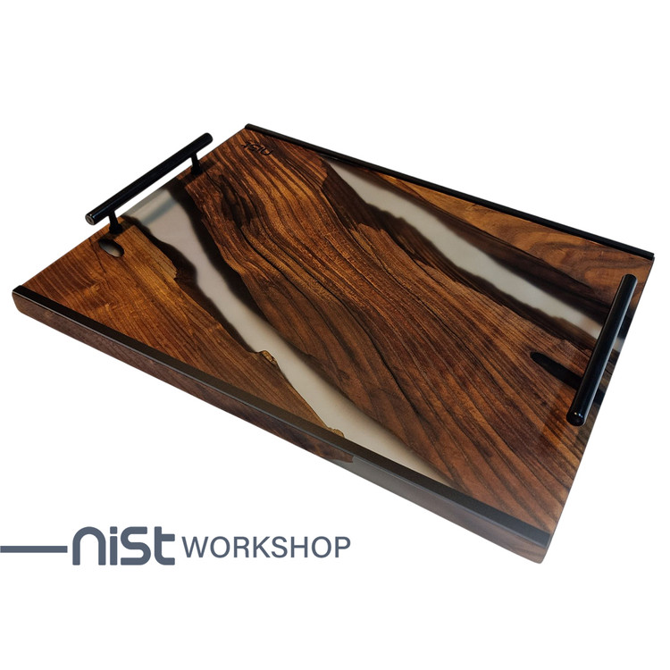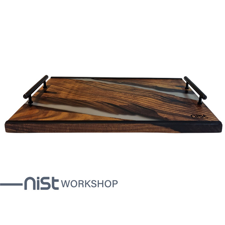 رزین دودی شفاف بهکاررفته در این سینی، جلوهای مدرن و لوکس به آن داده و تضاد زیبایی با رنگ گرم چوب ایجاد کرده است. همچنین، این رزین از کیفیت بالایی برخوردار است و در برابر تغییر رنگ و خراشیدگی مقاوم میباشد.