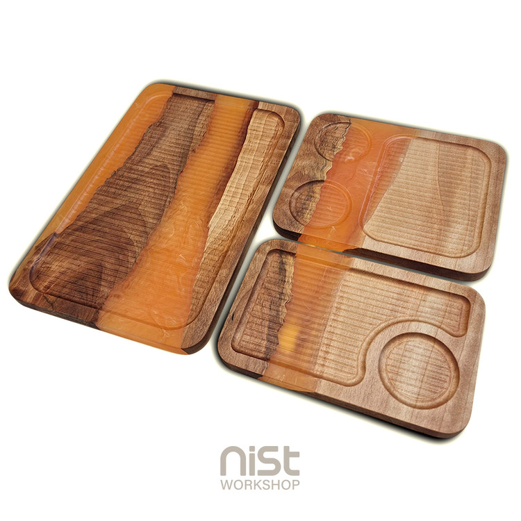 Wooden and resin coffee tray, Alder, caramel, cloudy - code 0005